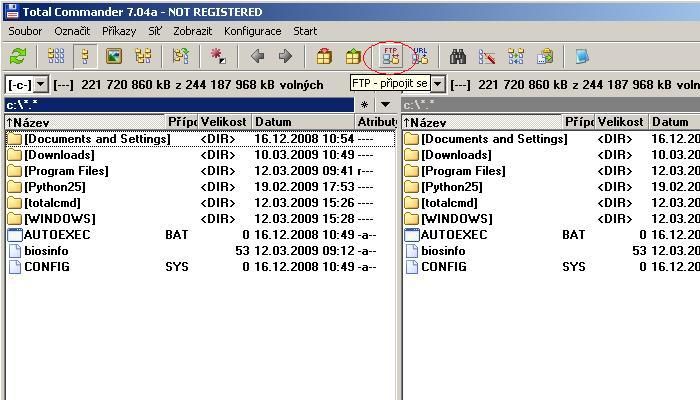 • Spustit přes ikonu FTP rozhraní pro připojení