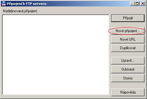 • Kliknutím na "Nové připojení" si založíme připojení pro připojení na FTP server.